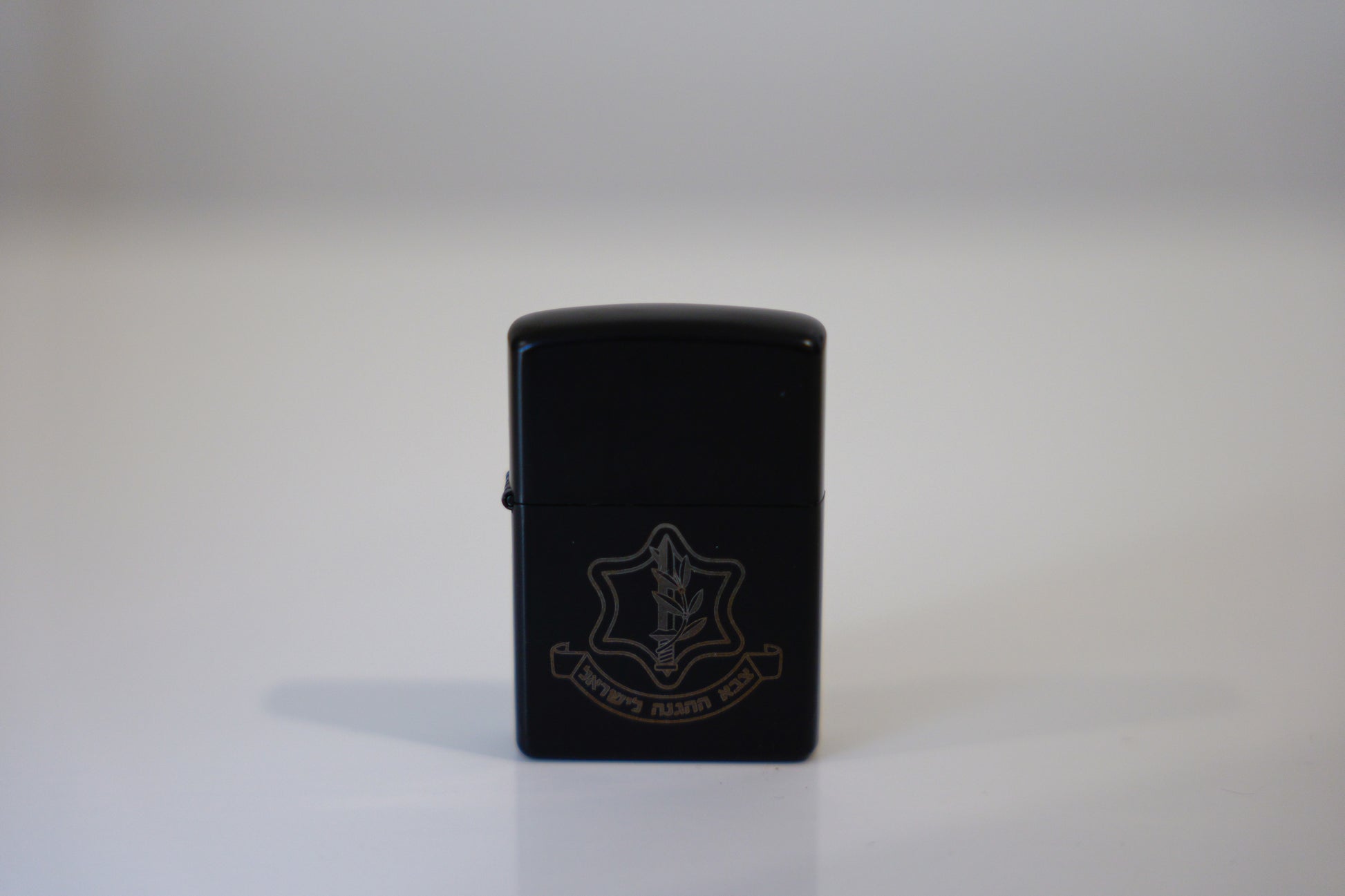 Sleek matte black Lighter featuring the official emblem of the Israel Defense Forces — a sword wrapped in an olive branch, symbolizing strength with a commitment to peace. A proud representation of Israel’s defenders and their mission to protect the nation.